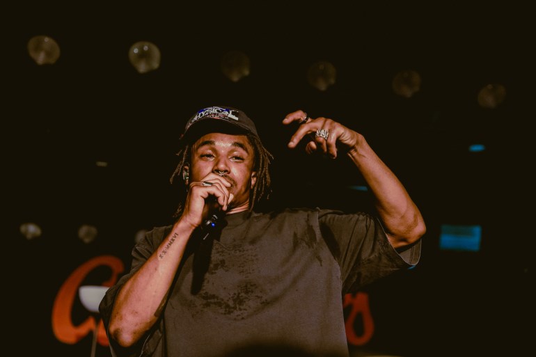 As Thee Scared Souls came on, they carried on the same energy as the opener with a little extra sprinkle of love. Their modern soul sound does not shy away from its roots. Stemming from late 60s, and early 70s sounds that I would compare to a contemporary spin on artists like, The Temptations, and Marvin Gaye. Their set consisted of an array of these sounds including, lighthearted ballads, Groovy rhythm heavy songs, and at one point, things got a little steamy with more of a sensual soul. My favorite part of the group’s sound is the Light playful guitar riffs and chords paired with the depper driving base, creating dynamic embellishments. Another thing that I loved was that the three singers played a primary role in setting the rhythms using unique melodic patterns. The group officially consists of three members. The drummer, Alex Garcia, bassist, Sal Samano, and Lead singer, Josh Lane. It seems that they are on tour with four other members, as well as worked with them to record their debut album that came out this past August.